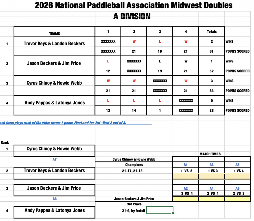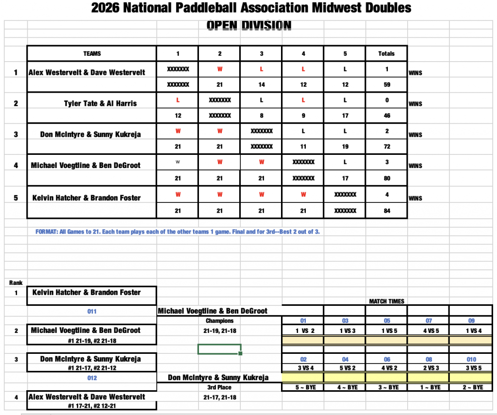 The National Paddleball Association (NPA) presented the 2026 Midwest Doubles Paddleball tournament this weekend. The host of the tournament this year was the beautiful and long standing Davison Athletic Club.